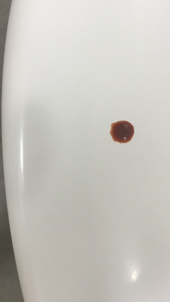 피가 맞는지는 명확하지 않지만 선홍색이 아니고 적갈색이라고 보는게 맞겠습니다.