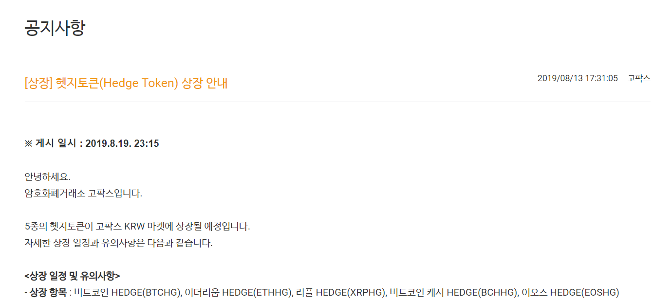 고팍스에서 헷지토큰을 8월부터 운용하고 있습니다.