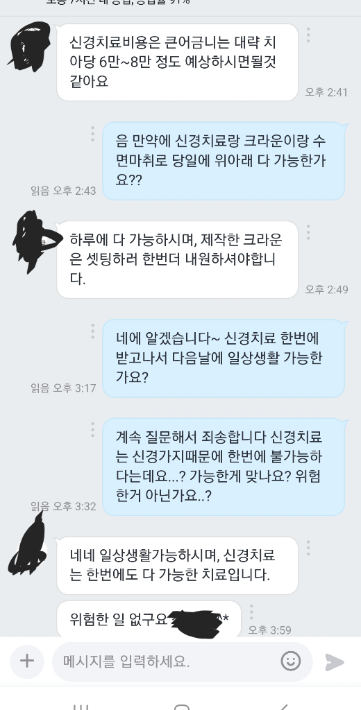 하루만에 끝낼 수 있는 신경치료도 있을 수 있고 아닌 경우도 있습니다.