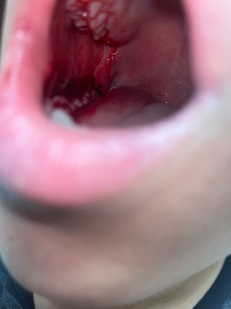 사진으로는 아직 출혈이 완전히 지혈이 된것으로 보이지는 않습니다.