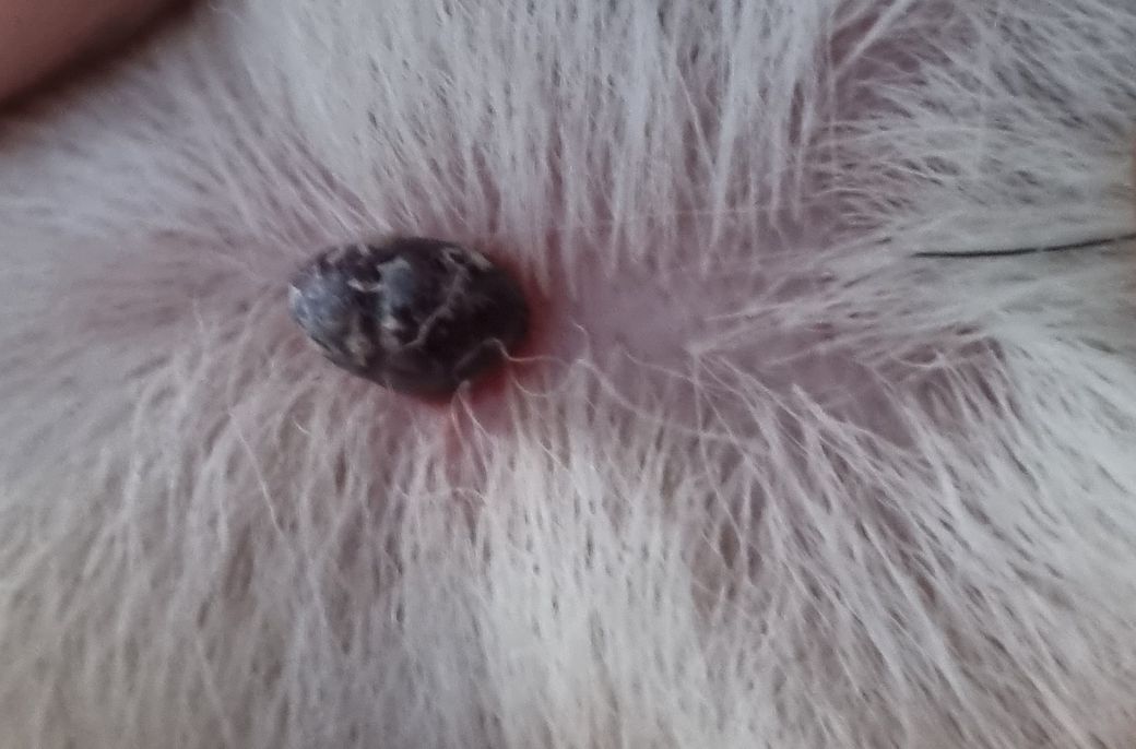 주변 피부의 발적 양상으로 볼때는 진드기 가능성이 높지만 몇가지 종양에서도 유사한 반응을 보일 수 있어 동물병원에 데려가서 직접 확인받고 적절한 치료를 받으시기 바랍니다.
