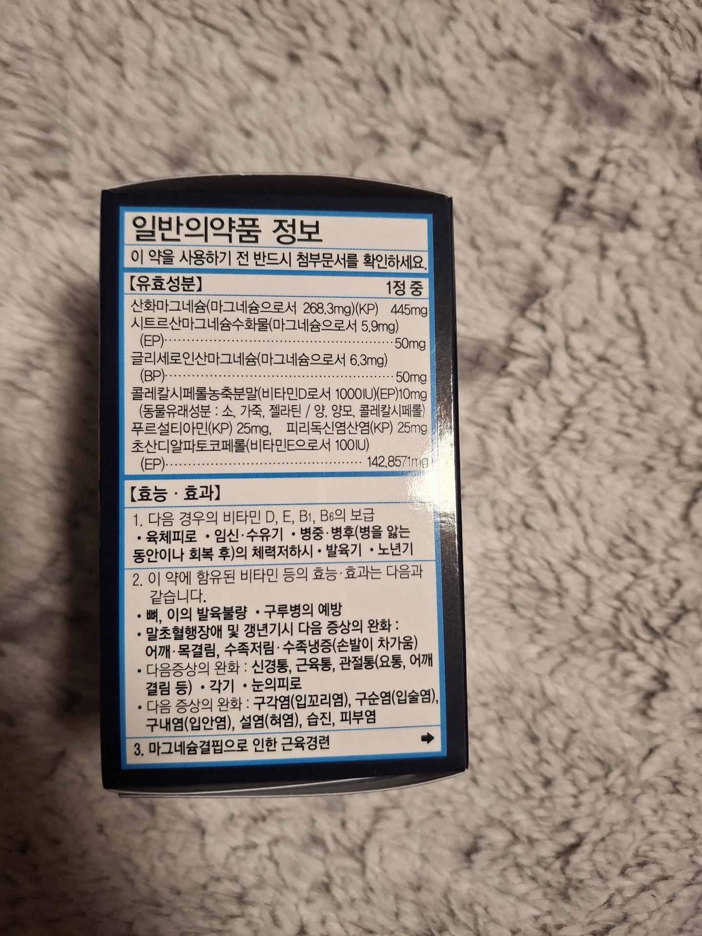 사진 속에는 3가지 형태가 들어있는데, 그 중에서 산화마그네슘 형태가 설사 가능성은 가장 높아보입니다