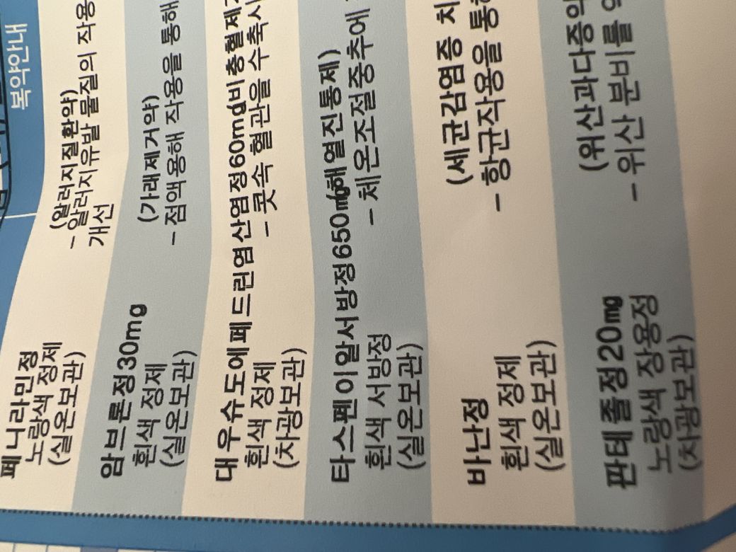 현재 아세트아미노펜인 타이레놀 성분이 함유되어 있는데요