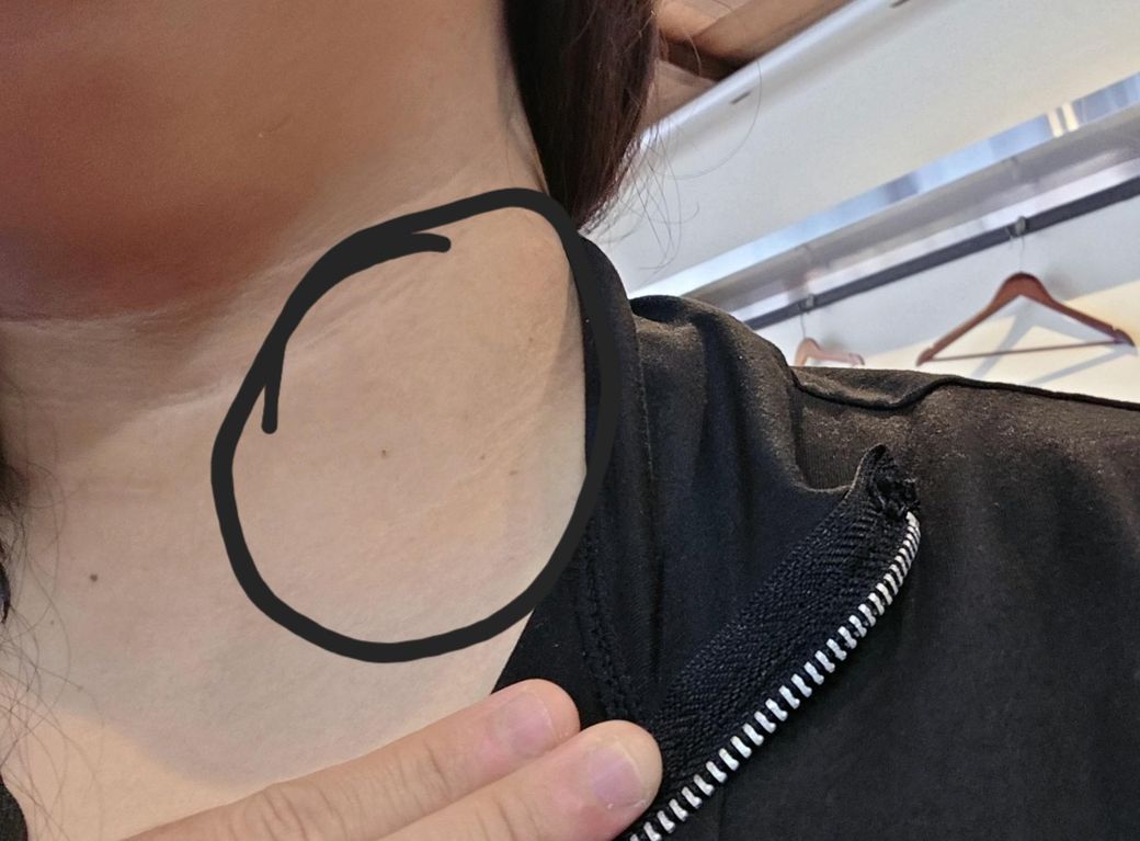 머리 박은곳이 지금 만지면 아프더라구요..ㅜㅜ 그리고 목 앞에 부분 사진 동그라미 친 부분 만지면 아파요..ㅜㅜ