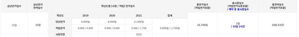 * 저는 1년차에 8일 2시간으로 사용했기에 > 2.8일이 남아있는게 맞다고 생각하는데 > 1.8일로 남음(캡처화면에서도 1.8일로 나옴) 원래 하나가 사라지는게 맞나요? 왜요...?