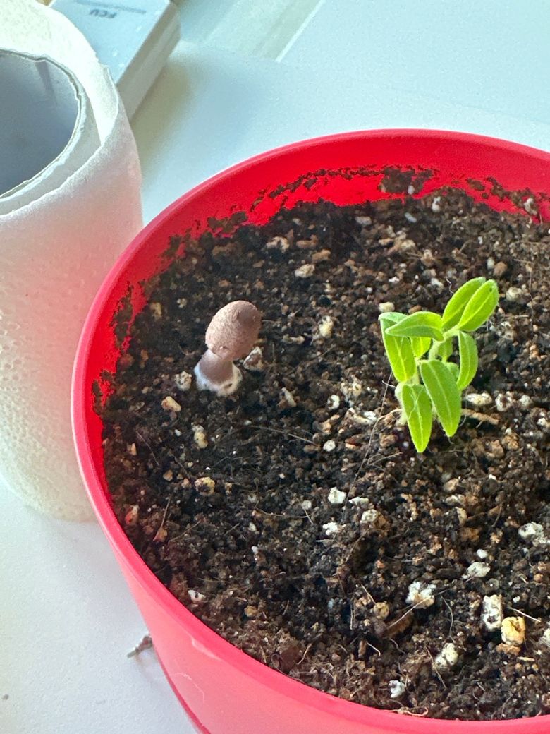 실제로 흙에는 많은 미생물이 존재합니다. 아마도 토마토 씨앗외 다른 미생물또는 곰팡이 균에 의해 나오는 식물로 판단됩니다.
