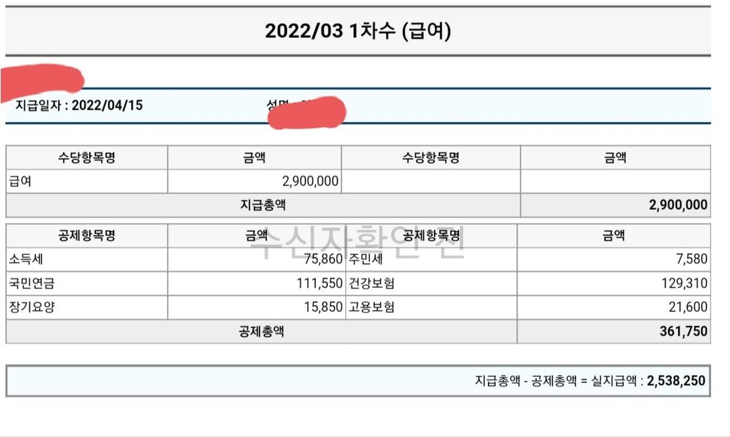 3월에 290으로 잘못책정해주셔서 4월에 공제하고 받기로했는데요
