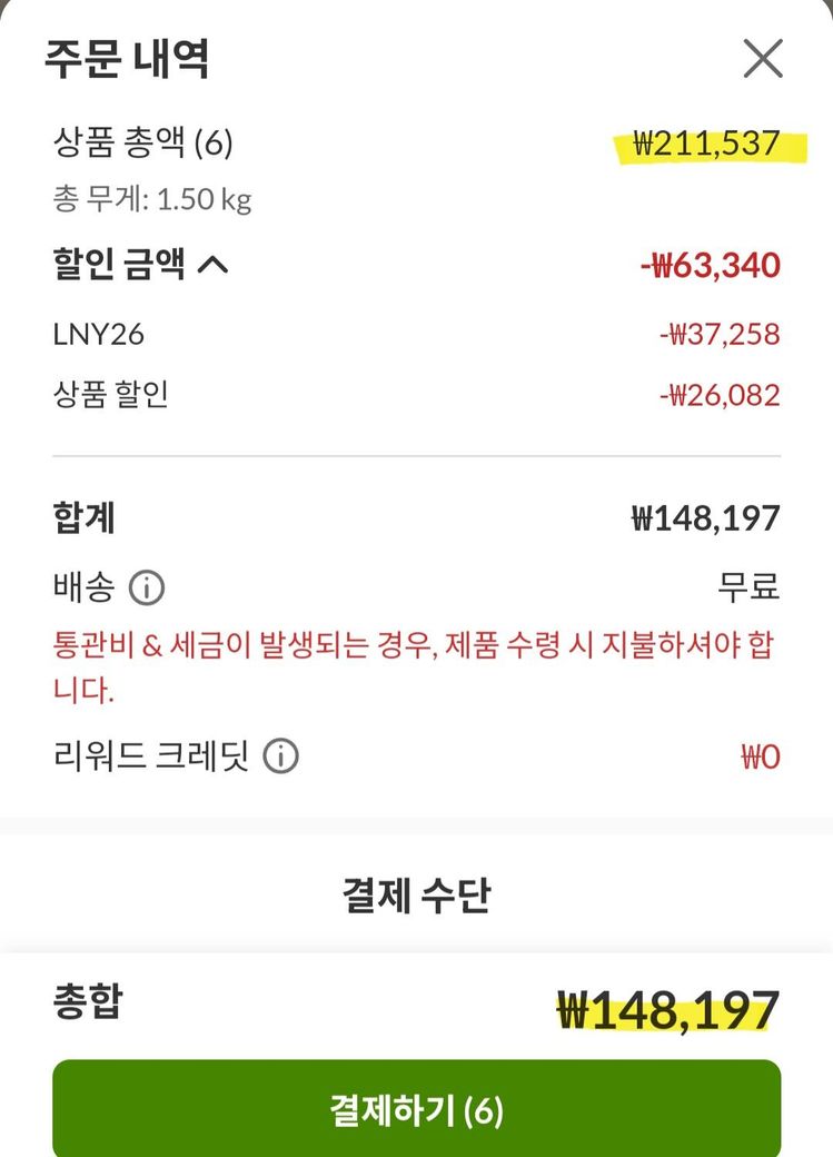 150달러 관세 기준이 할인 전 금액인지,