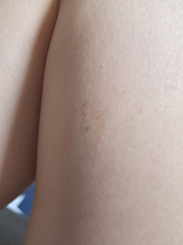 전에 가끔 붉은 반점만 보이는 경우는 있었는데 이렇게 보라색이 동반된 건 처음봐서 질문 올려봅니다...