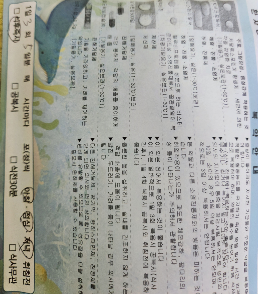 금요일에 받으신것은 코감기위주의 처방입니다