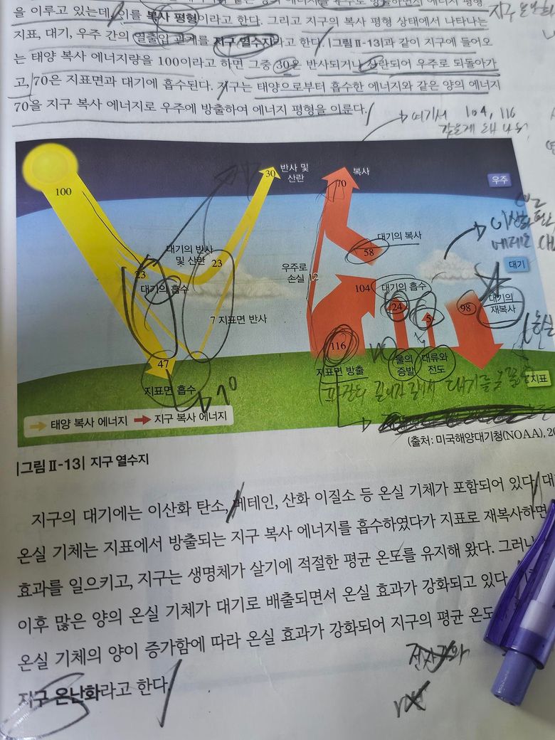 제가 태양이 100 을 줘서 30 방출하고 , 70 을 지구에서 흡수 하는건 알겠는데요.