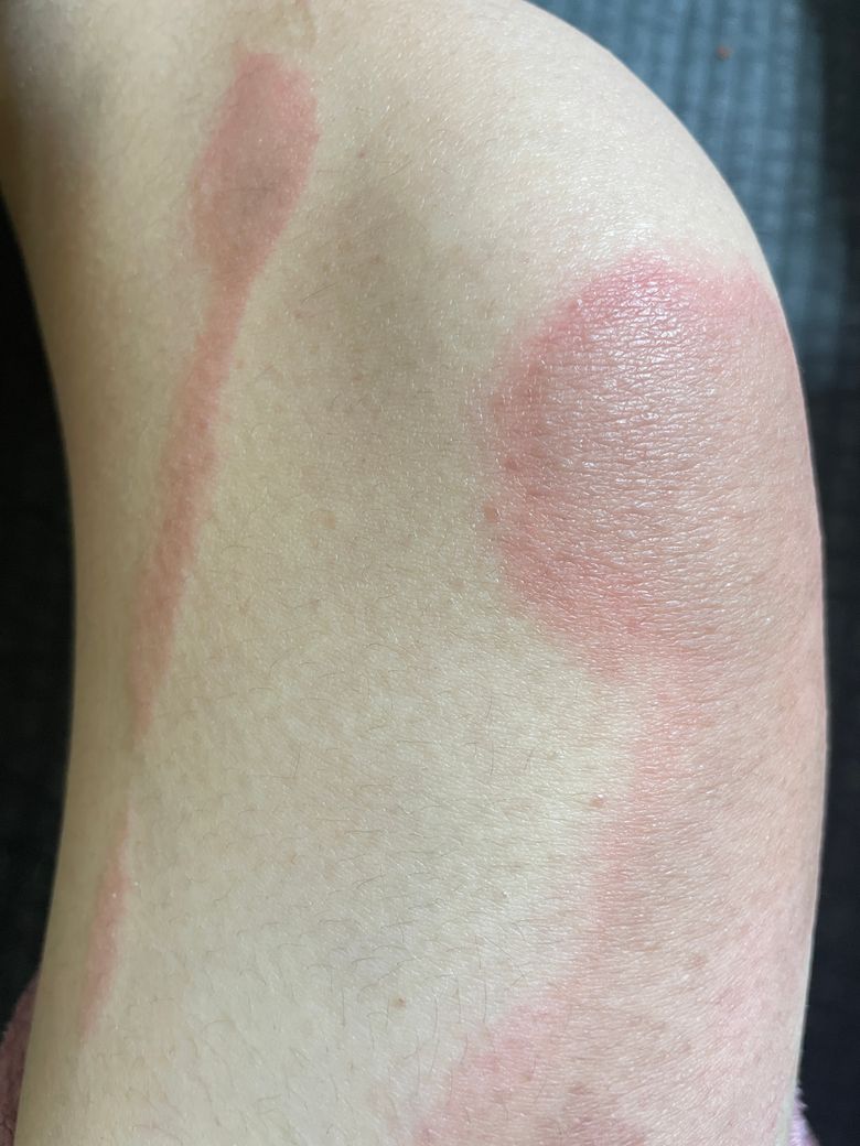 물집이 잡히지 않았다면 1도 화상이겠습니다.