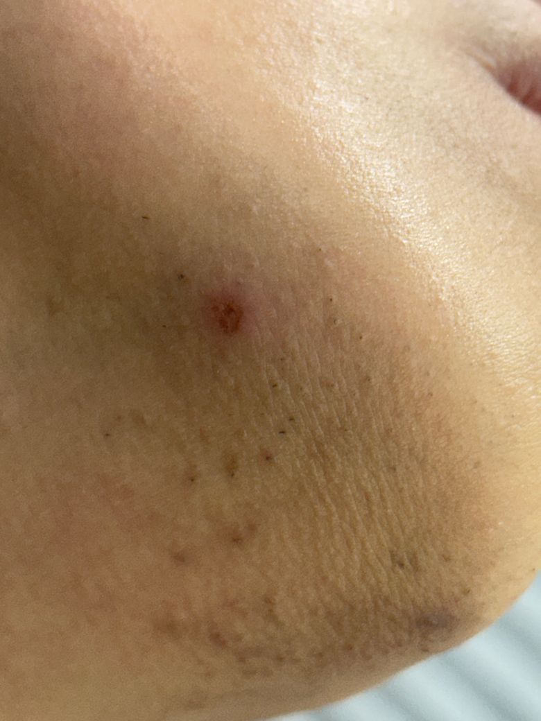 (피부과에서 돋보기로 봤는데 상처 부분에는 안보였다고 합니다.)