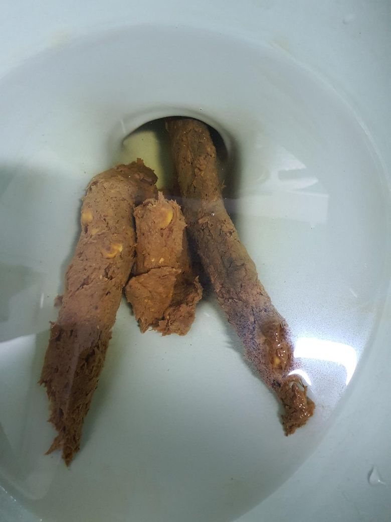 변을 보면 하얀 덩어리가 같이 나옵니다.