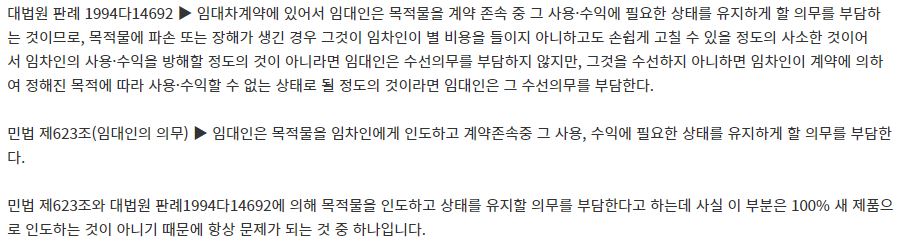 소모품과 관련된 사항은 민법과 대법원 판례에 나와있는데 대략적인 내용은 아래와 같습니다.