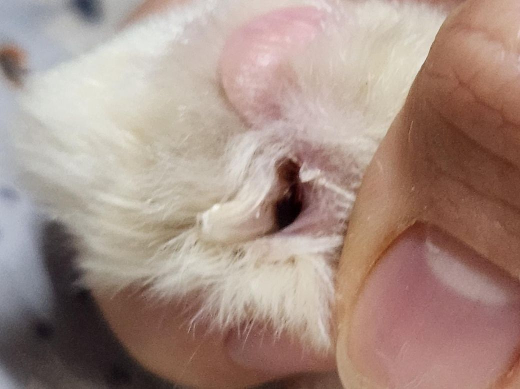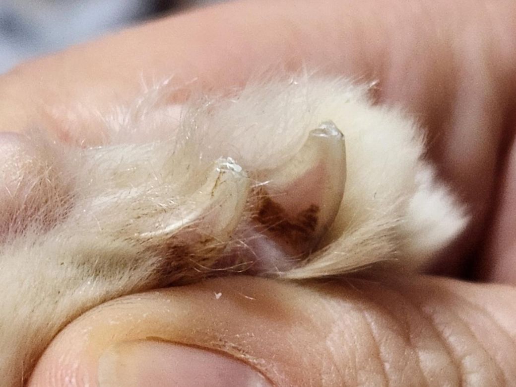 방금 고양이 발톱 잘라주려는데 뒷발톱 속에 전체적으로 피가 고인 건지 염증인지 검붉습니다