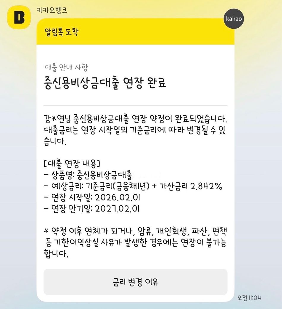 비상금대출 연장신청 완료 된건가요?