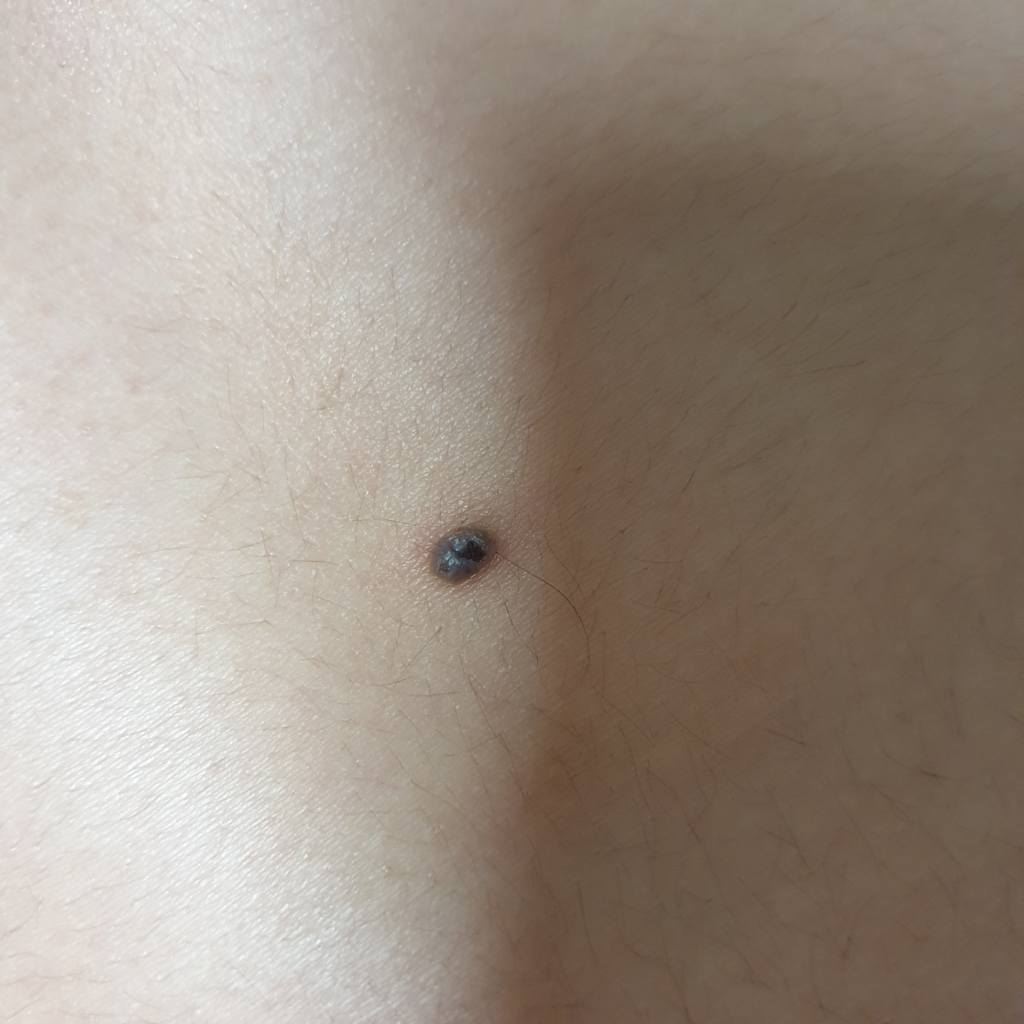 멜라닌세포모반으로 보이고 양성병변이라 큰 걱정하실 부분은 아니지만 불편감을 느낀다면 제거를 고민해보실 수 있겠습니다. 피부과를 방문해 상담받아보실 수 있습니다.