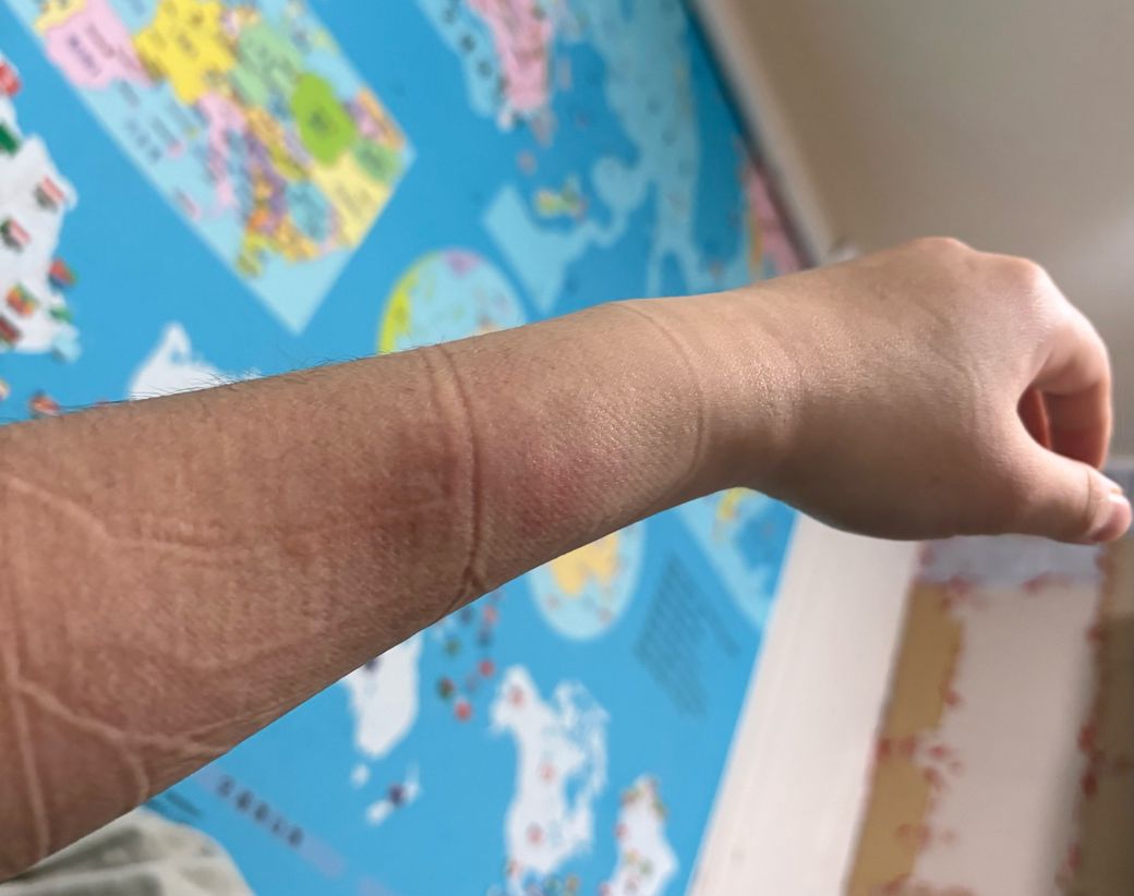 넘어진 팔에 놀다가 공에 맞았습니다ㅜ