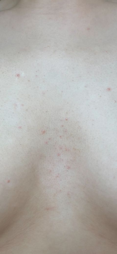 정리하면 현재는 흉부 여드름 가능성이 높고, 기존 치료 연장은 가능하되 자극 조절이 중요합니다. 2주에서 4주 내 호전이 없거나 병변 양상이 바뀌면 진단 재평가가 필요합니다.