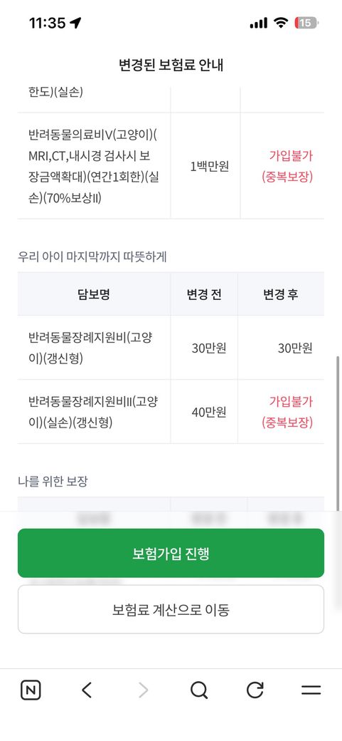 보험넣은 고양이는 완전히 다른 아이들인데 왜 한마리는 이부분이 보장이 안되는거예요???????