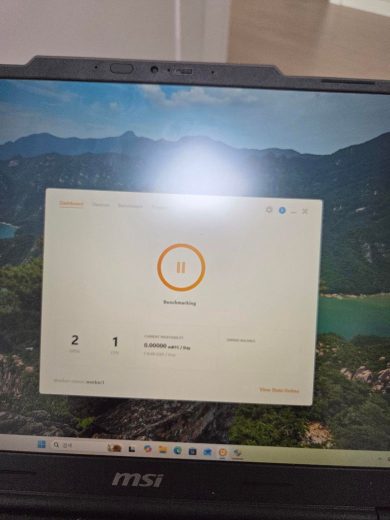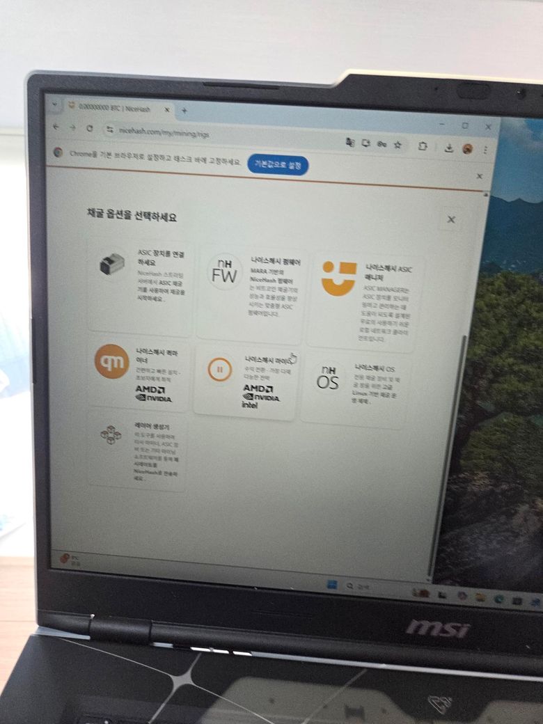 제가 nice hash(채굴기 없이 노트북 에서만)