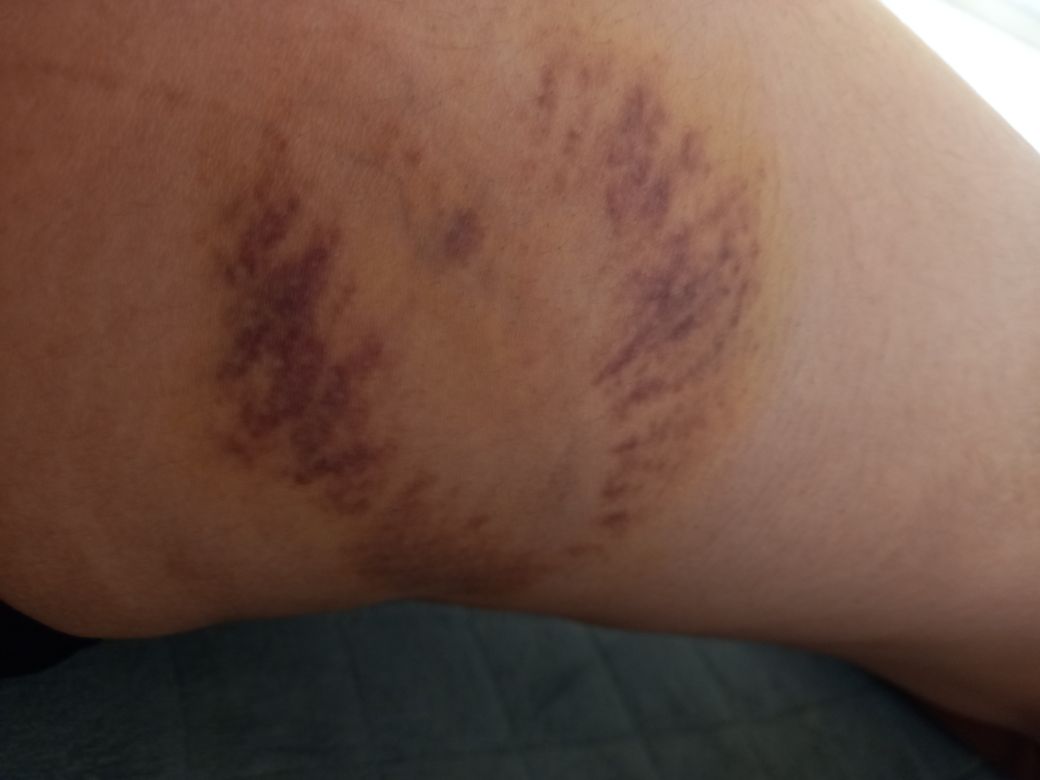 막대기같은거 부서질정도로 맞은지 일주일 정도쯤 되서 많이 가라앉았지만
