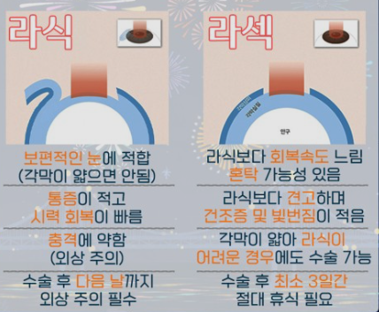 와이프가 시력이 안좋아서 렌즈를 자주 끼는데 수술 고려하고 있습니다. 라식과 라섹의 차이점이 궁금하며
