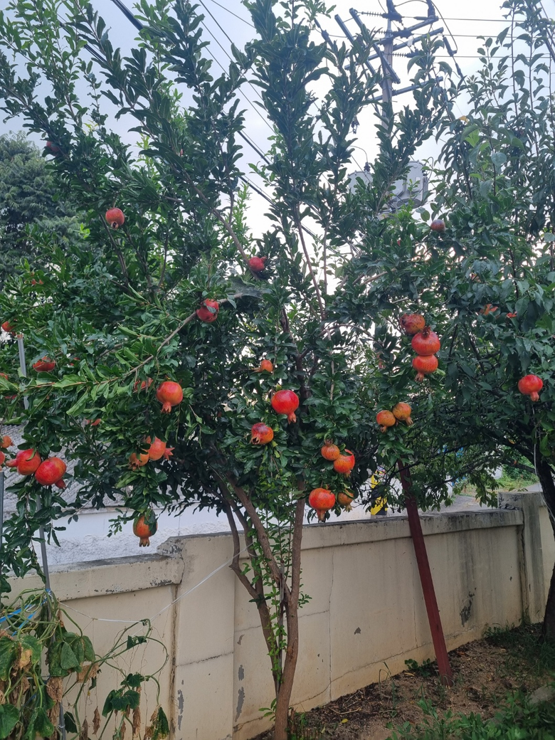 가을은 석류의 계절이라 하였던가요? 이웃집 담벼락에 석류가 빨갛게 물들고 있습니다.