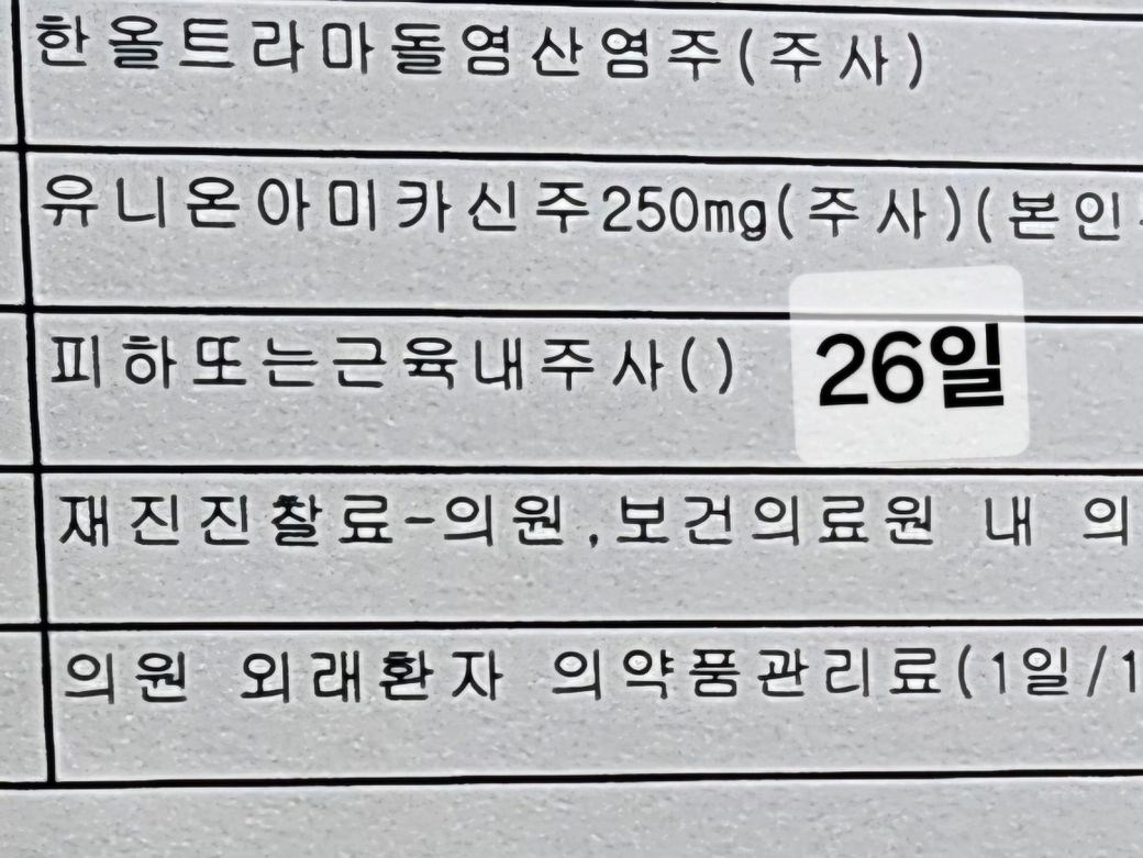 근데 제가 받은 세부내역서엔 주사 약물이름이 달라서 마음이 좀 불편하네요 ㅠ