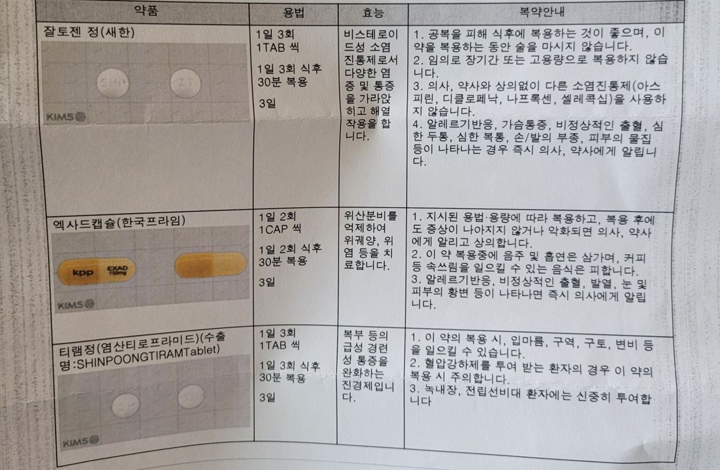 잘토젠정 옆 설명에 다른 소염진통제랑
