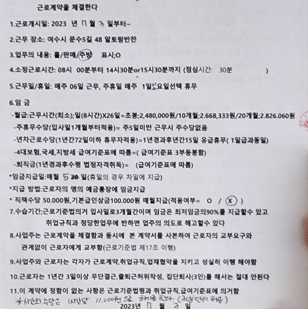 초과근무 시간당 11,000원으로 하는 것도 법 위반입니다.