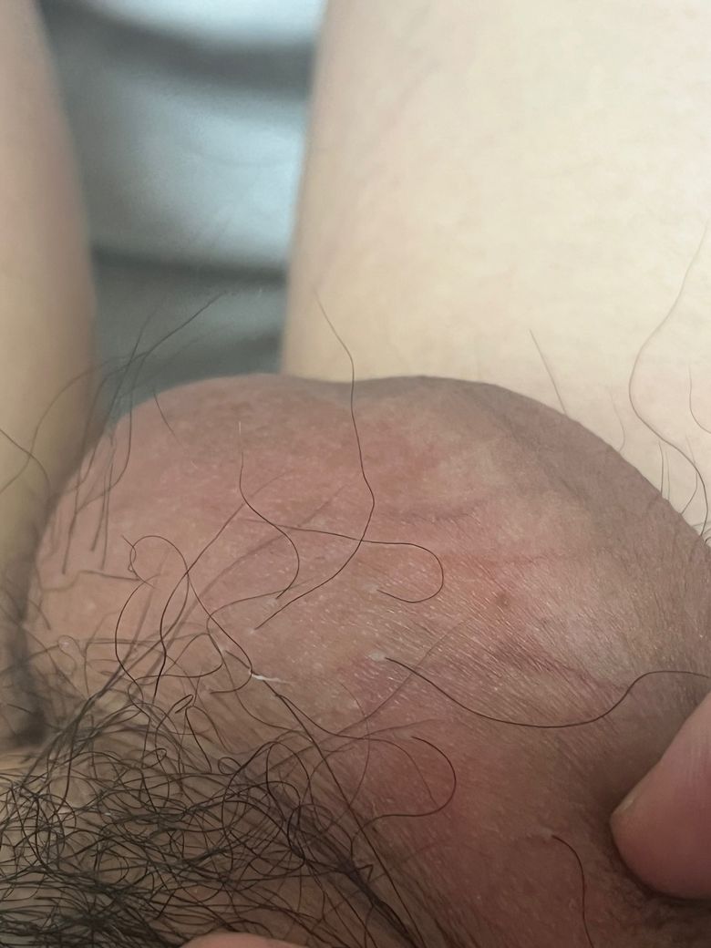 혹시 이 사진에서 헤르페스 수포같은 건 보이지 않는데 헤르페스 2형 일 수 있나요? 털 아래쪽에 있어서 피지가 많은 느낌일수도 있나요.?