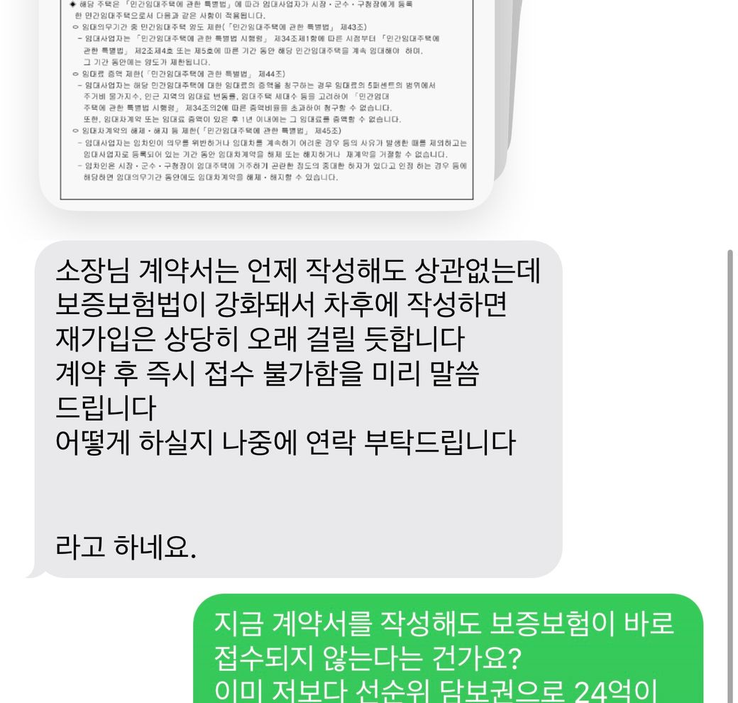 보증보험법이 강화되어서 차후에 작성하면 가입은 상당히 오래걸린다는 문자 내용을 이해할 수가 없네요.