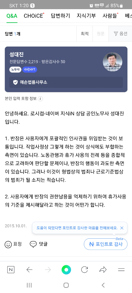 구체적인 사실관계를 알 수 없어 명확한 답변을 드리기 어려우나, 근로자 대표를 선출함에 있어 근로자와 사용자의 이중적인 지위를 갖는 자는 제외되는 바, 인사/급여/후생/노무관리 등과 근로조건의 결정 또는 근로의 실시에 관하여 지휘명령 내지 감독을 할 수 있는 일정한 책임과 권한이 사업주에 의해 주어진 자는 근로자에 관한 사항에 대하여 사업주를 위하여 행위하는 자로서 사용자에 해당합니다. 따라서 반장이 사업주를 위하여 행위하는 자에 해당한다면 사용자이므로 근로자 대표로 선출될 수 없습니다.