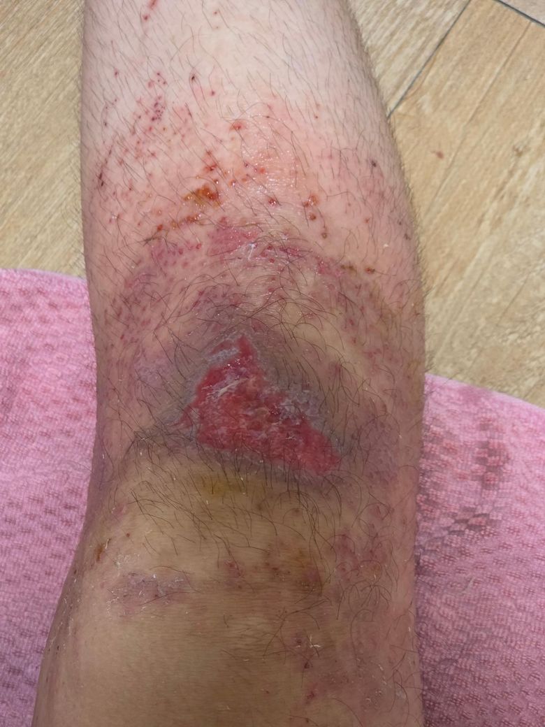 오른쪽 무릎은 진물 좀 나고 주변부는 괜찮았지만 점점 갈수록