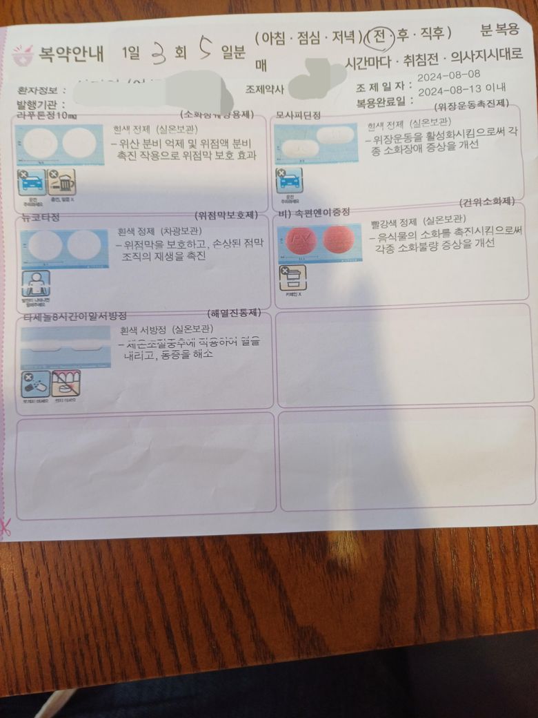 5일분 처방받았는데 - 오늘 점심부터 먹으면 다음 주 화요일 아침까지 먹으면 됩니다