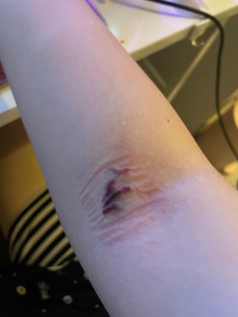 수액 맞은 후에 지혈이 충분히 되지 않아서 발생한 것으로 보입니다. 시간이 지나면 붓기 및 고인 피가 사라질 것이기 때문에 지켜보시기 바랍니다.