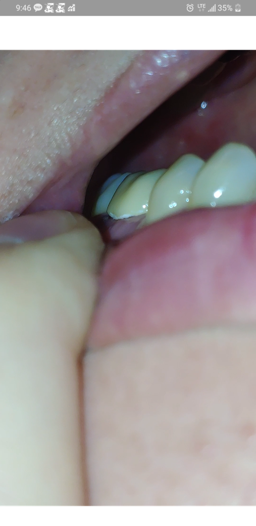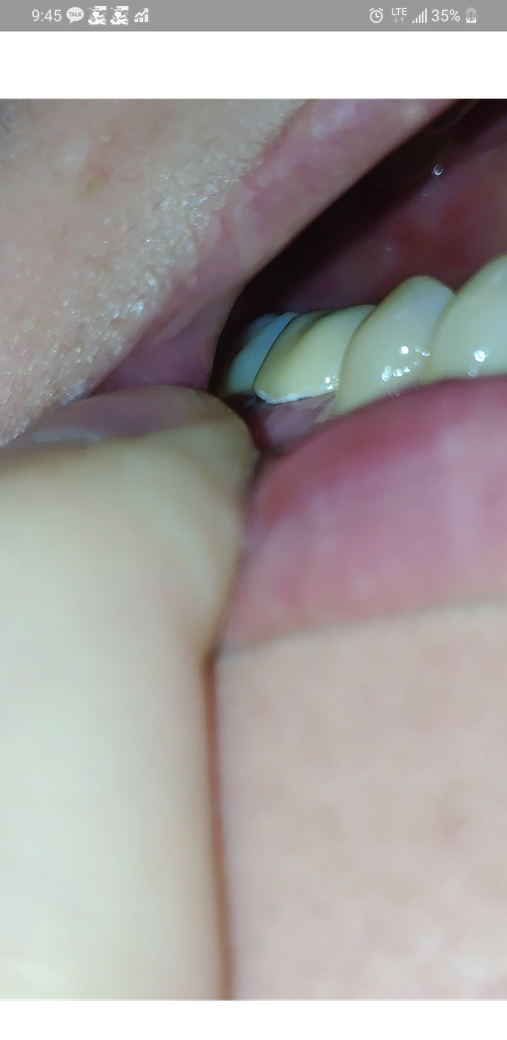 임시치아로 붙여줬을땐 이 바깥쪽면 아래 잇몸까지 감싸줬었습니다.