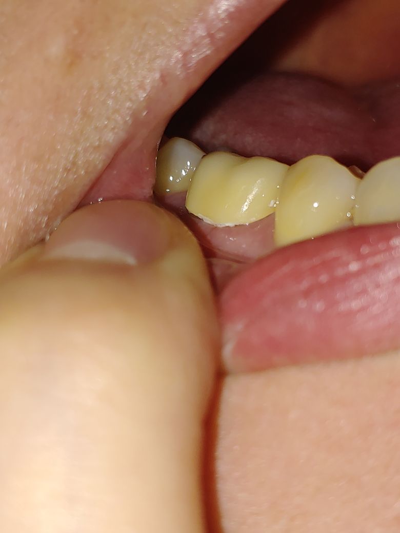 사진처럼 바깥쪽은 저렇게 투박하게 잇몸과 떨어져있는 상태입니다.