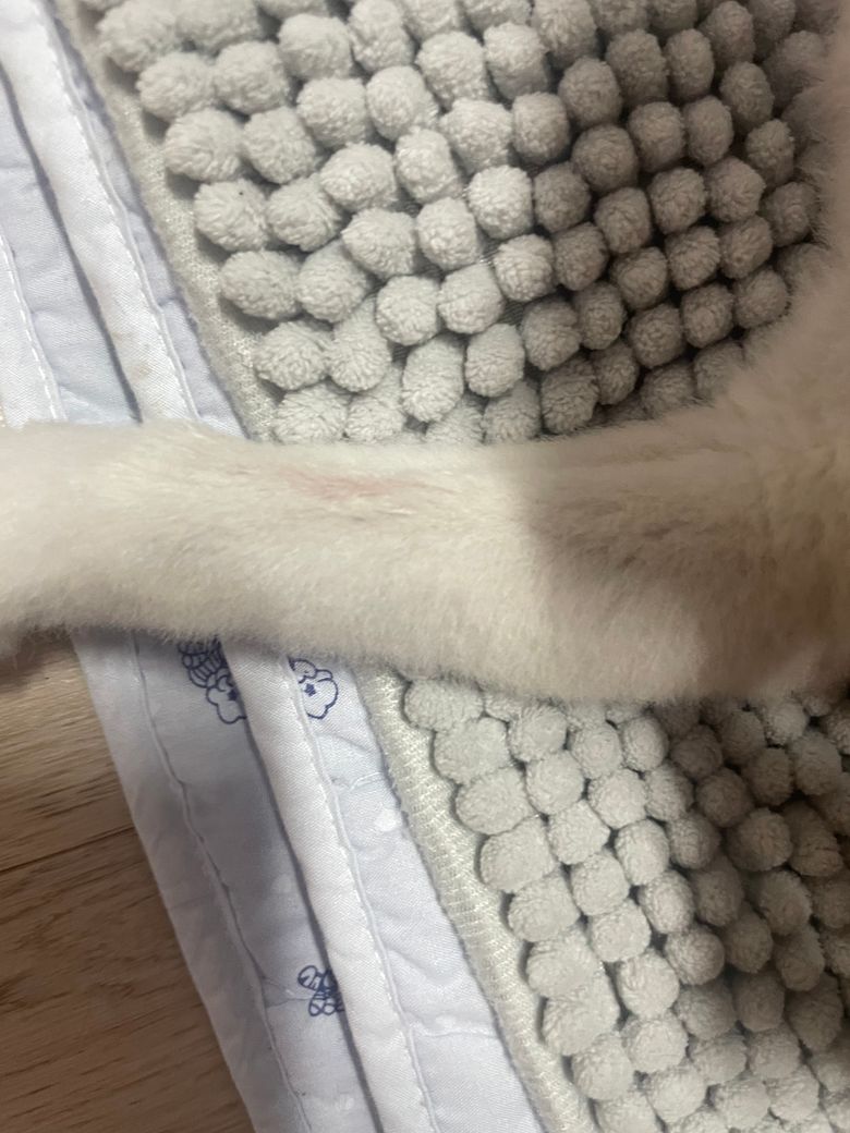 안녕하세요. 박창민 수의사입니다. 올려주신 사진으로는 판단이 불가합니다. 또한, 약간의 발적은 있어 보이지만, 털 때문에 판단이 불가합니다. 일단 넥카라를 씌우셔서 더 이상의 접촉을 막으시고 동물 병원에 가셔서 검사를 한 번 받아보셔야 합니다. 감사합니다.