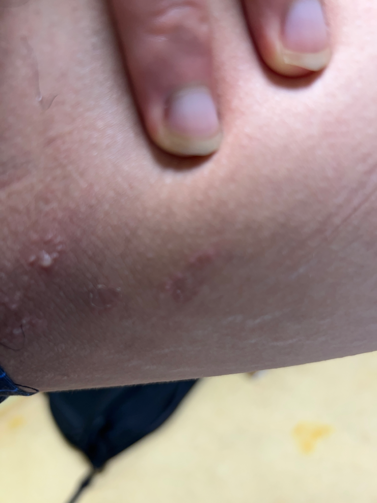 사진으로 병변이 잘 보이지는 않으나 진균 감염증의 가능성도 배제할 수 없겠으니 피부과 진찰을 받아보시는 편이 안전하겠습니다.