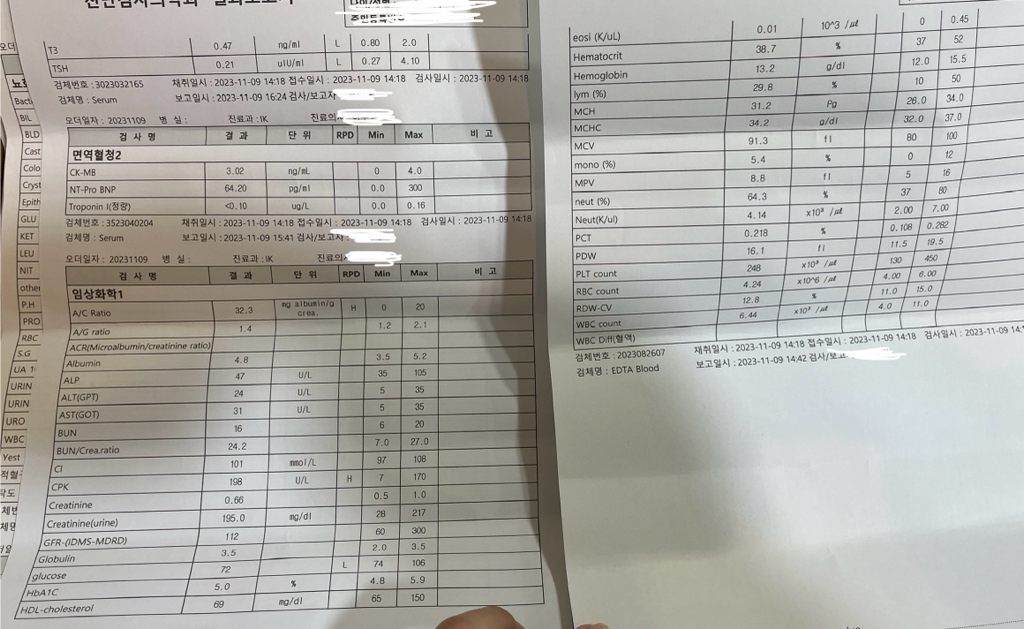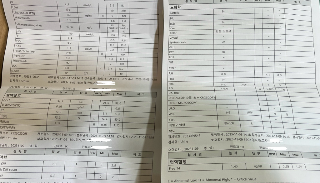 혈액검사, 소변검사 (당뇨, 혈당, 요단백, 콜레스테롤 수치) 도와주세요..