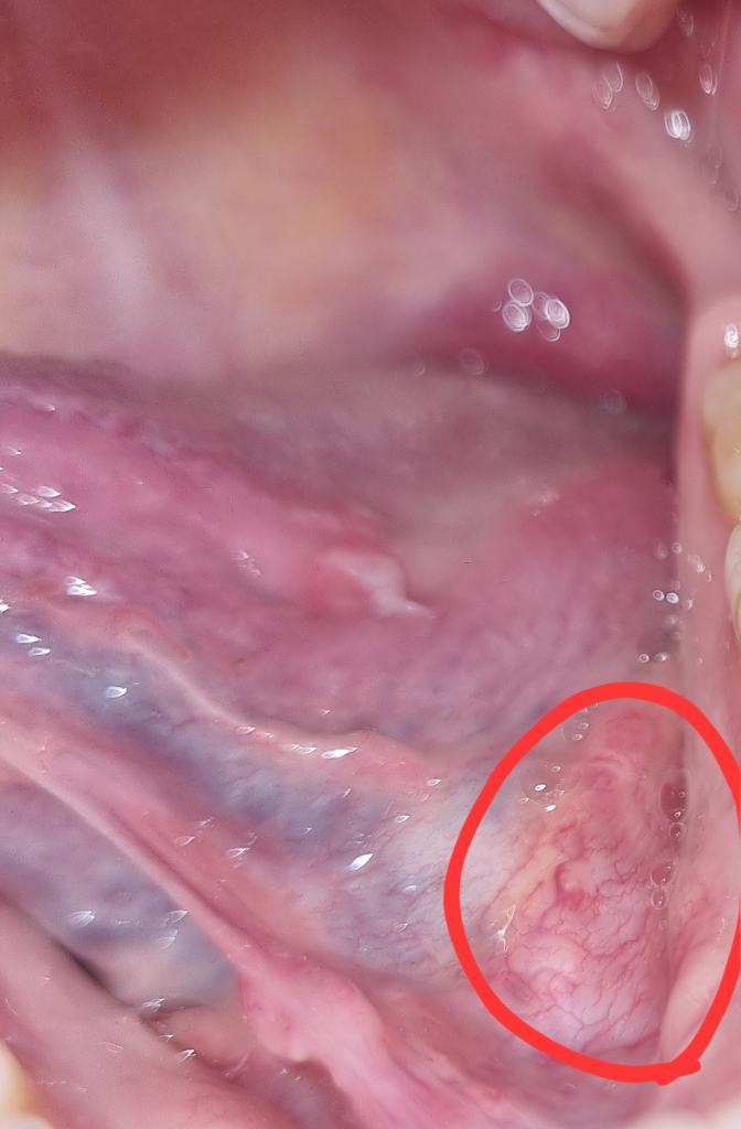 저부위는 특별히 붓거나 하진 않은거 같은데 불편하신곳이 어떤 자극을 받고 잇는거 같습니다. 사랑니 빼고나서 그런거라면 시아 확보시 혀을 누를떄 저부분을 기구로 눌러서 그랫을수도 있으며 이럴경우에는 시간이 지나면 괜찮아 지실꺼에요.