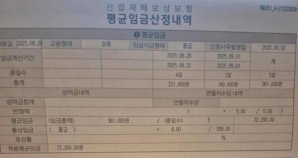 근데 하루일급이 14만원이였고 28일에는 일을했고 29일엔 준비가안되었다며 쉬어라해서 8월엔 28일 근무,29일에는 쉬어라며 4만원을 지급 30,31일엔 주말이라 근무를 하지않았고,9월1일 근무,9월 2일에 사고가 났습니다