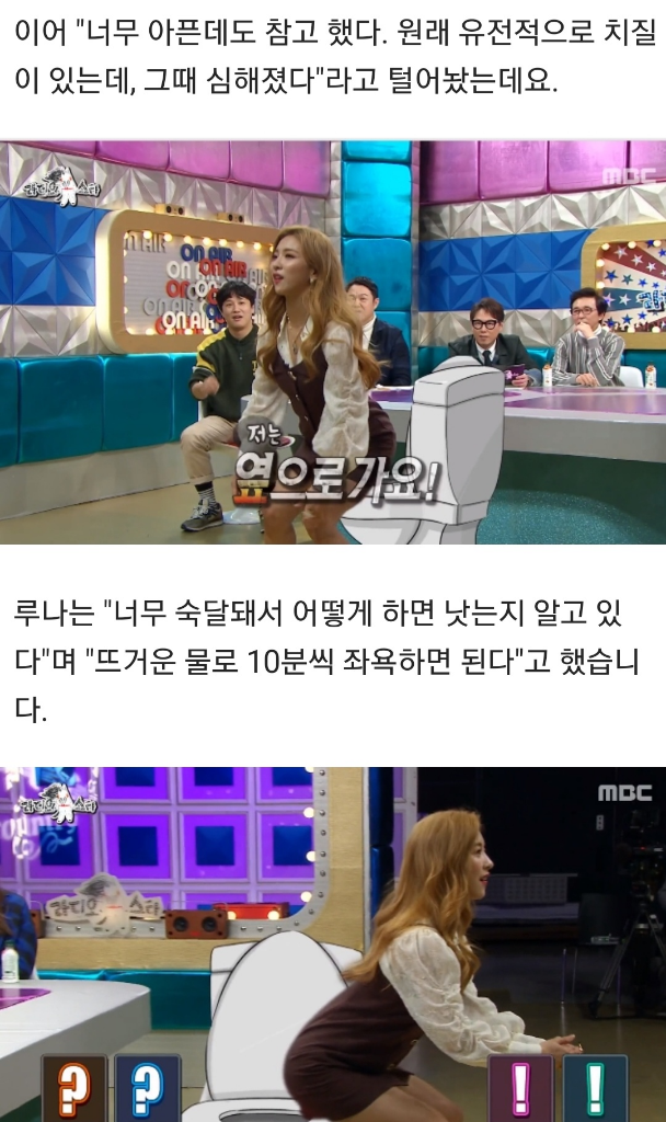 라디오스타에 나와서 치질예기를 한적이 있어요 ㅎㅎ