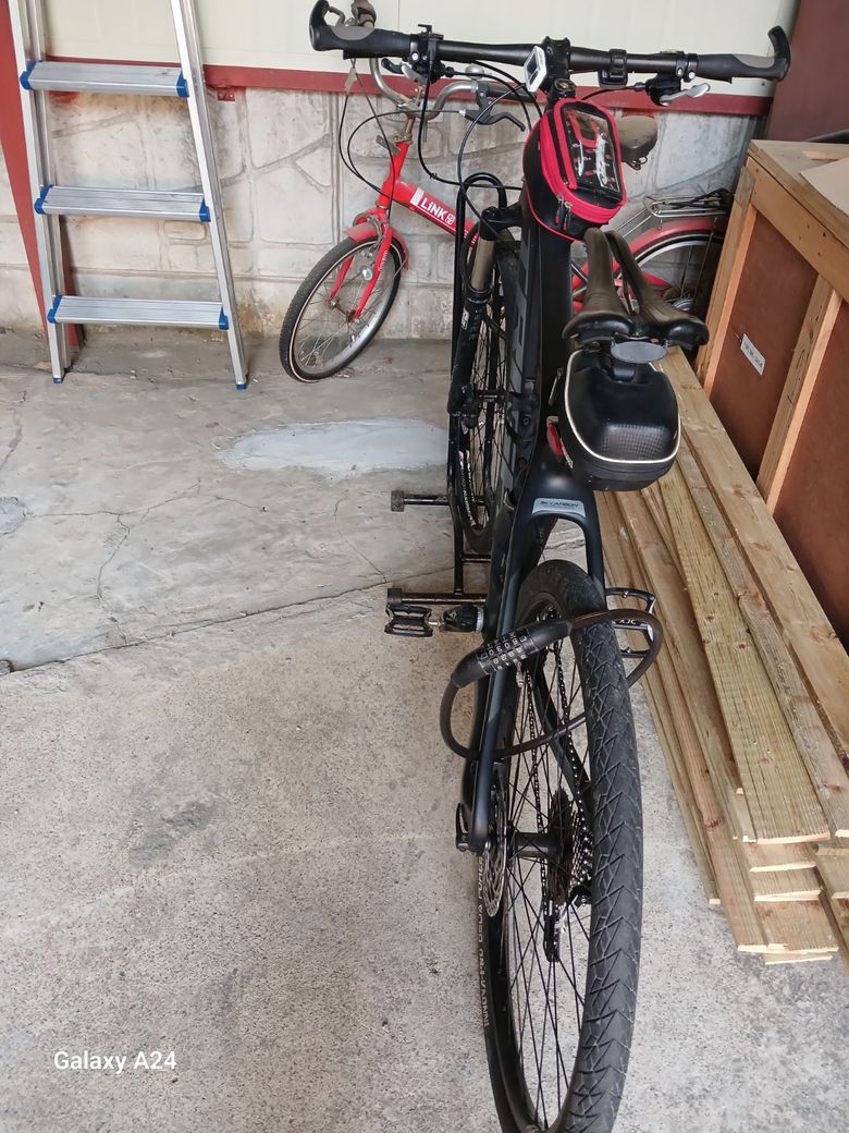 접이식이거나 잘 안보이지만 전기자전거 같네요? 모토벨로 MOTO VELLO 제품인것 같습니다