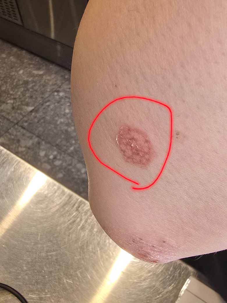 부정확하지만 감염된 것처럼 보이진 않습니다. 물집도 우선은 보이지 않구요