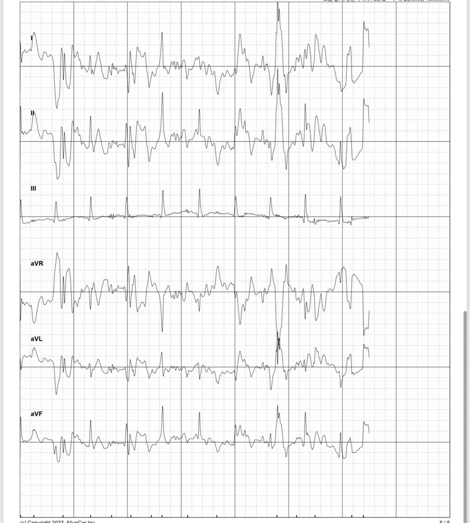 우선 심전도 자체에 노이즈가 너무 많아서 판정불가 입니다.