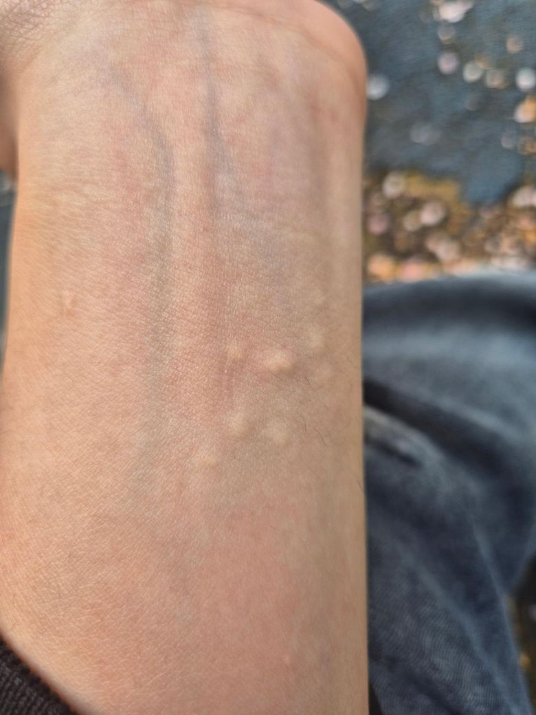 손목을 뒤로 꺾었을 때만 눈에 보이고 생긴지는 좀 됐고 가렵거나 증상은 전혀 없습니다. 그리고 만졌을 때 오톨토돌한게 느껴집니다 혹시 이게 멀까요..?ㅠㅠ
